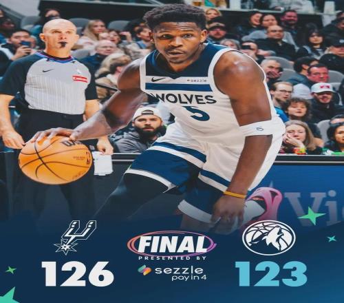 最后4秒,尚帕尼居然两罚不中。文班抢到前场板,森林狼只能犯规,26分大逆转失败了。全场结束,马刺主场126-123险胜森林狼。爱德华兹爆砍55分4板3助,得分打破生涯纪录。文班亚马39分9板3助2帽、福克斯25分3板12助!